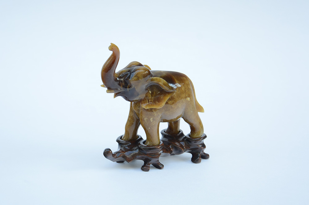 Elefante in pietra dura, con base in legno (difetti) Cina, prima met‡ sec. XX (h. 14 cm.)