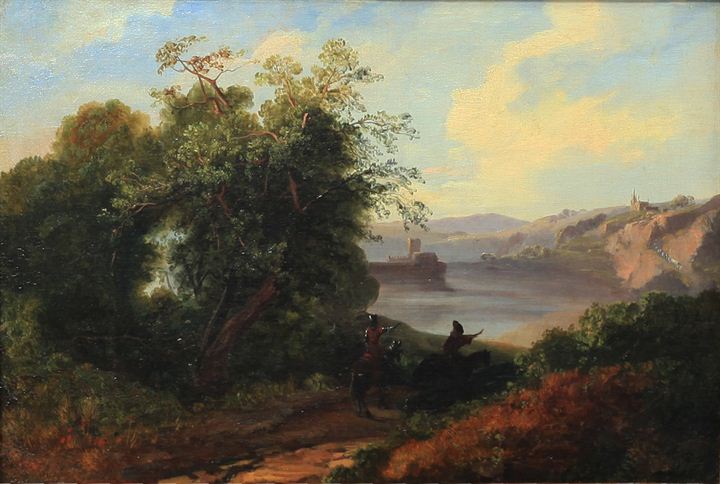 "Paesaggio fluviale con figure a cavallo" 1850 ca