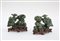 Due gruppi scultorei con volatili in giada verde scuro, con basi in legno (l. 17 cm.)