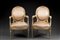 Coppia di poltrone in legno intagliato e dorato con schienale decorato a...