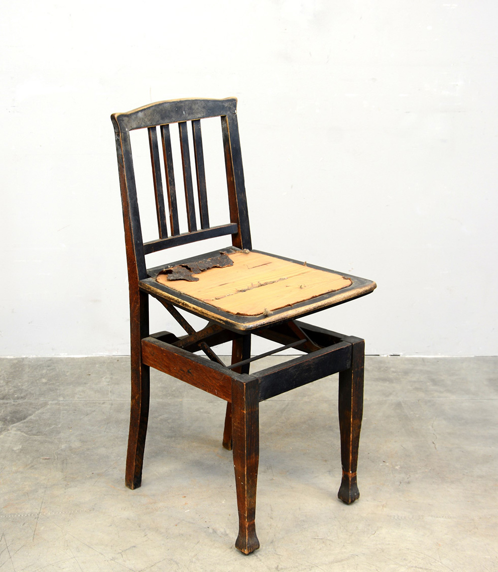 Sedia regolabile in altezza con schienale a giorno e gambe sagomate. Inizio sec. XX (difetti)