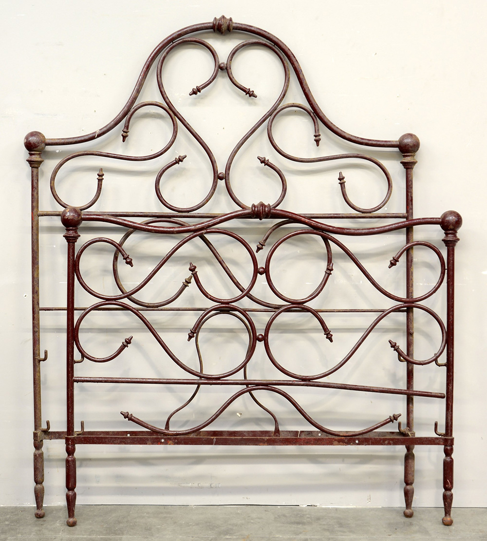 Testiera e pediera di letto in metallo di forma sagomata (difetti)