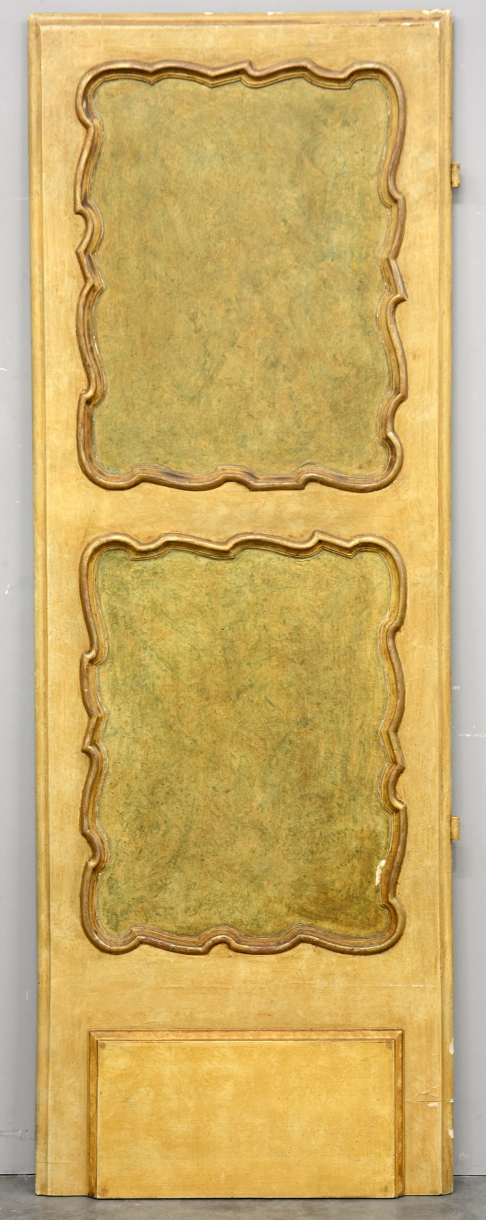 Anta di porta in legno laccato decorata con bugne (h cm 203) (difetti)