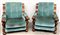 Coppia di poltrone con struttura in legno e rivestimento in velluto verde,...
