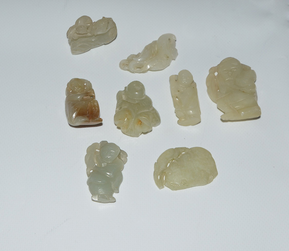 Otto intagli in giada Cina, sec. XX (h. max. 6 cm.)