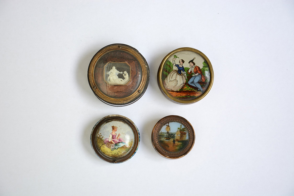 Lotto composto da quattro scatole in materiali diversi. Sec. XIX (difetti)
