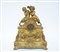 Pendola da camino in bronzo dorato con figure in altorilievo sormontata da...