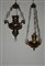 Lotto composto da due lampade votive in ottone e metallo di epoche diverse, montate a luce elettrica (difetti e restauri)