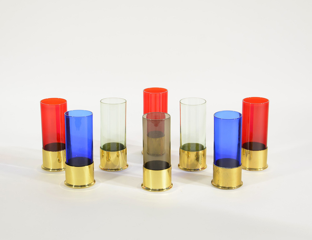 Lot 367 | Gruppo di otto bicchieri di forma cilindrica in vetro di colori diversi con...