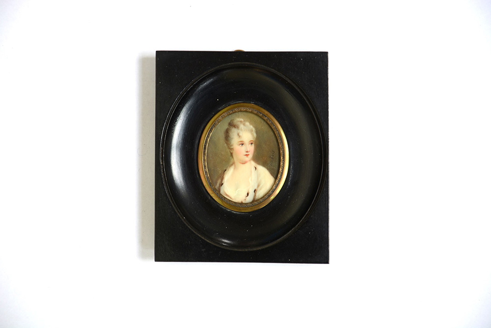 Scuola della fine del sec. XIX "Ritratto di donna" miniatura ovale su avorio (cm 4,5x3,5). Firmato a destra. In cornice