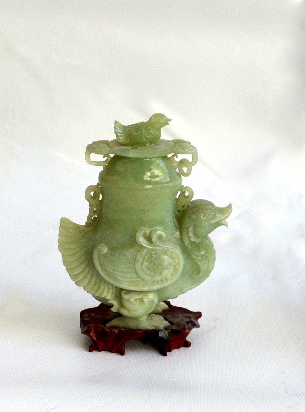 Vaso arcaico a forma di volatile fantastico in pietra dura Cina, sec. XX (h. 25 cm.)
