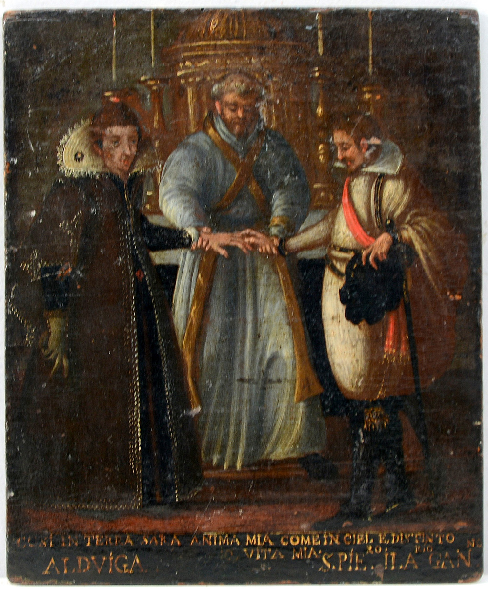 Lot 396 | Ignoto "Scena di matrimonio" olio su tavoletta (cm 25,5x21) Inscritto in...