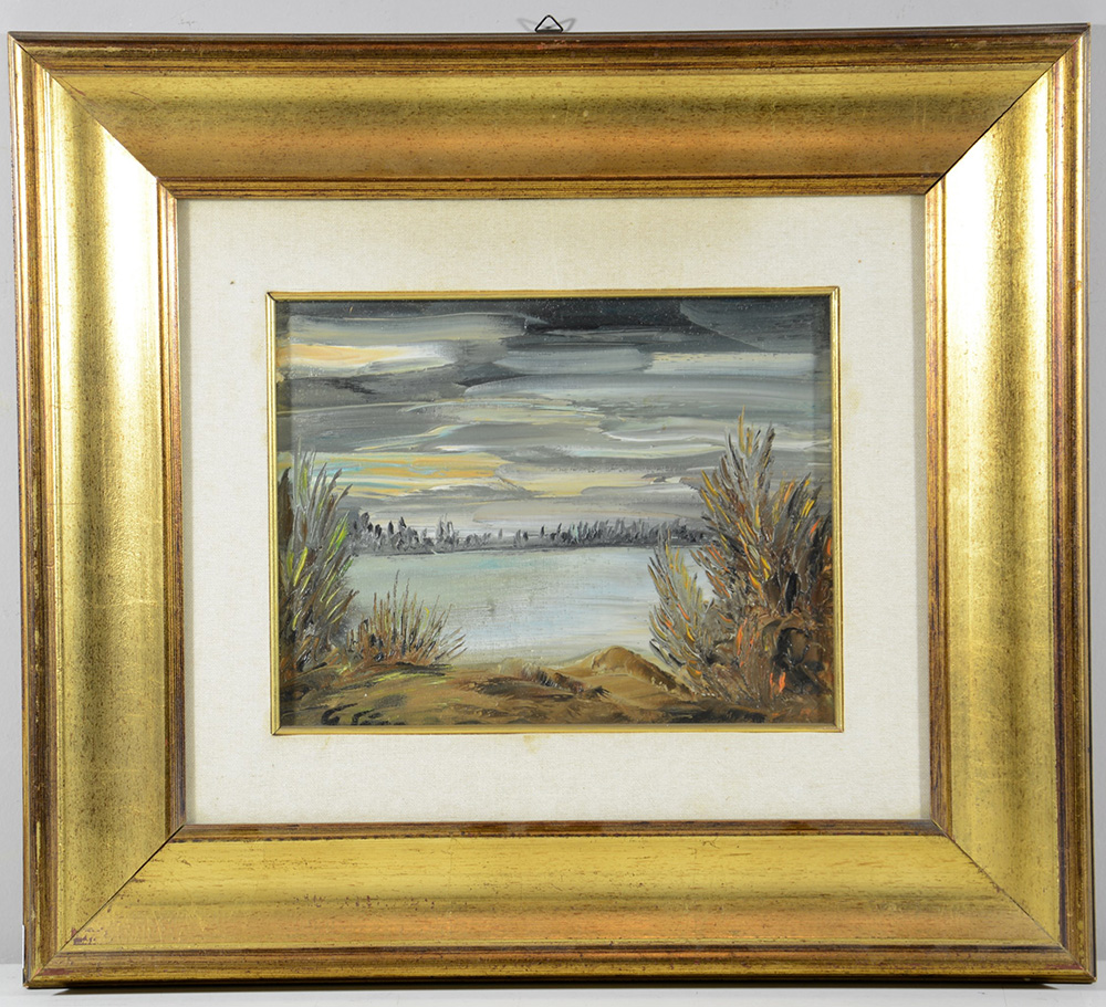 Secan George "Paesaggio con stagno" olio su tela firmato in basso a sinistra(cm25x30)In cornice