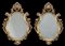 Coppia di specchiere di forma mossa in legno scolpito e dorato, pendenti di foglie e fiori ai lati, la cimasa traforata (cm 60x44) Sec. XVIII (difetti e restauri)