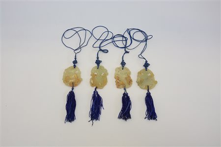 Lot 463 | Gruppo di quattro placche intagliata in giada a nefrite decoarti una con...