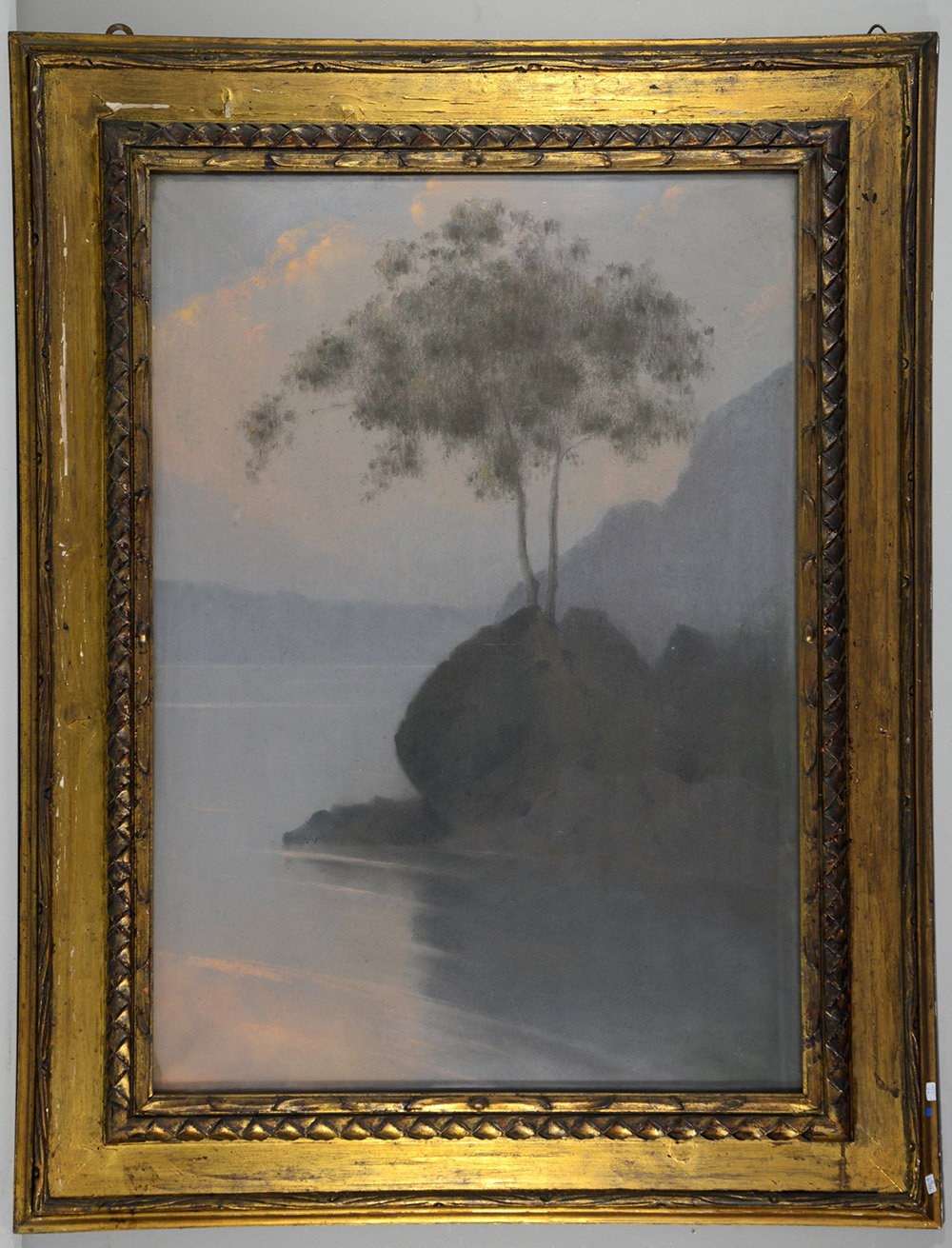 Bezzola Mario "Paesaggio lacustre" tecnica mista (cm 85x60). Fimato e datato 1922 in basso a destra. In cornice