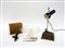 Lotto composto da due scatole, una lampada da tavolo, un alzata in vetro, tre tagliacarte e una sculturina raffigurante aquila (difetti e mancanze)