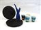 Lotto composto da un vaso portafiori, quattro tazze in ceramica e cinque piatti in metallo di Alessi