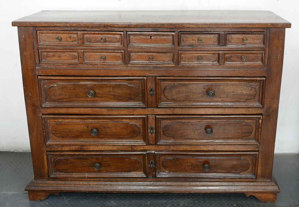 Lot 544 | Cassettone in noce a cinque cassettini sottopiano e tre grandi sul fronte...
