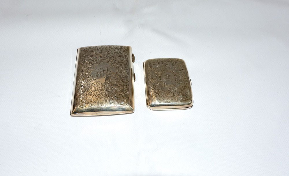 Due portasigarette in argento di diversa dimensione di cui uno Birmingham 1917 e uno Birmingham 1913 (cm 9x7; cm 12x9) (gr 220 ca.) (difetti)