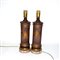 * Coppia di abat jour con corpo in vetro decorate a putti con festoni e strumenti musicali. Ghiera in metallo dorato, base in marmo (h cm 50)