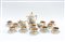 Servizio di caffe in porcellana Capodimonte composto da lattiera, caffettiera e zuccheriera 12 tazzine con piattino (una tazzina con mancanza all'ansa testa del mostro marino)