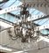 Lampadario a otto luci con braccia sagomate decorato a perlinature e gocce in vetro (difetti)