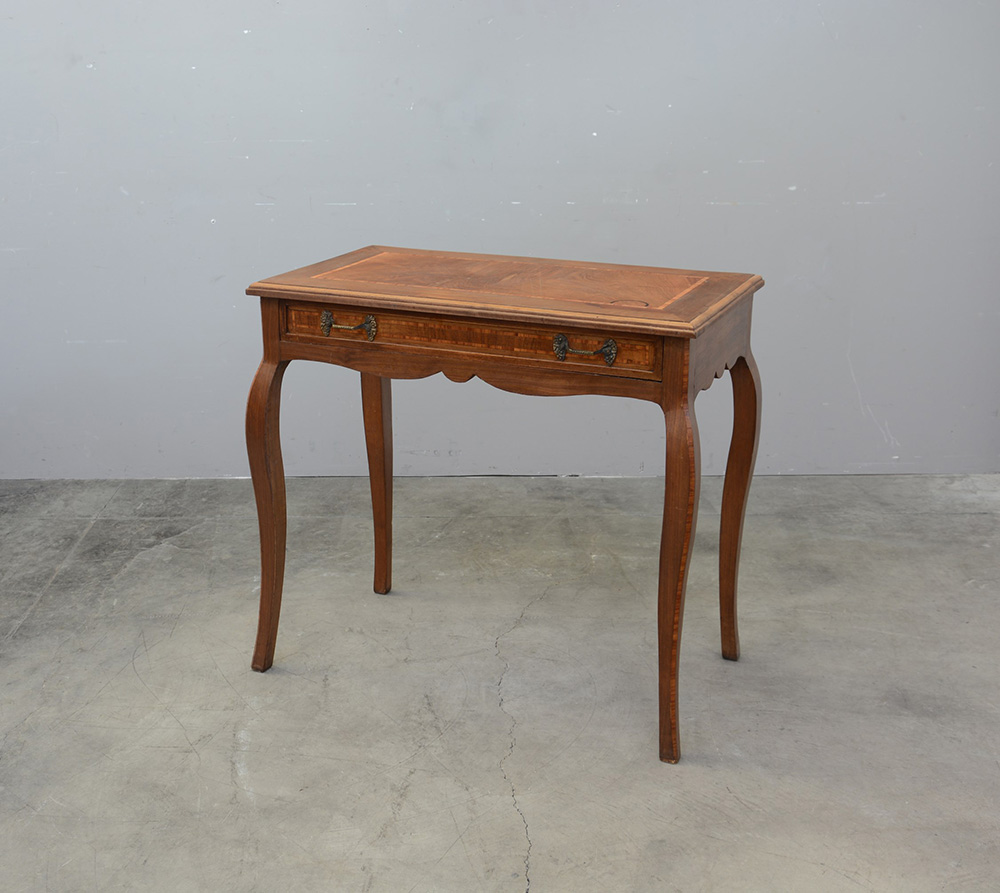 Tavolino scrittoio rettangolare ad un cassetto nella fascia, gambe sagomate (cm 90x80x47)