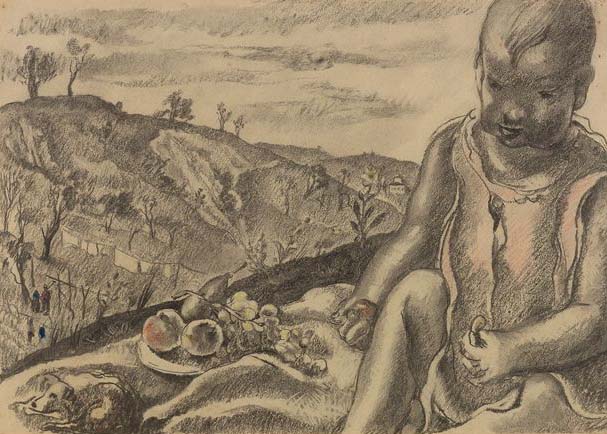 33,5x47 carboncino, matite colorate e pastelli su carta