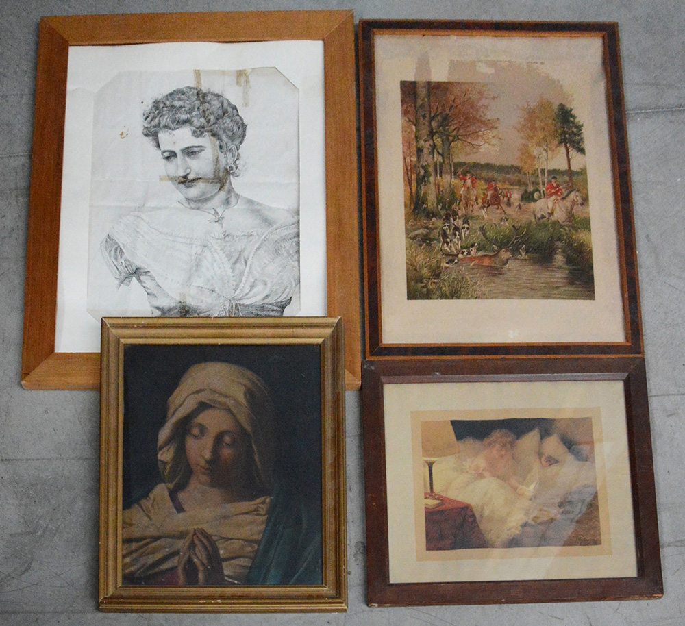 Lotto composto da quattro stampe di soggetti e autori diversi in cornici (difetti)