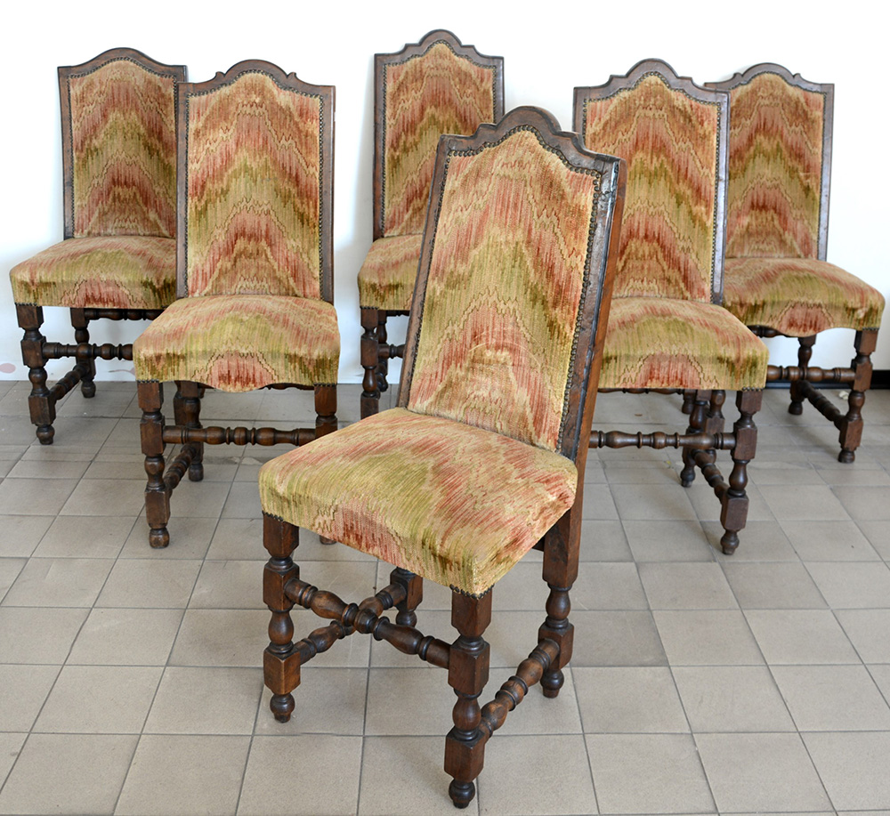 Lot 841 | Lotto composto da sei sedie in noce a rocchetto. Diverso decoro (lievi...