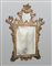 Specchiera rettangolare in legno dorato con cimasa e fregi intagliati e...