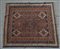 Tappeto Kamseh, Persia meridionale, fine secolo XIX. Disegno a rombi geometrici policromi su fondo blu (cm 127x12) (difetti)
