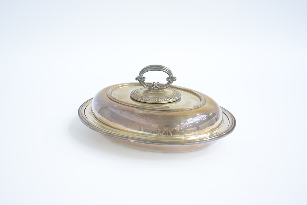 Legumiera di forma ovale in metallo argentato. Inghilterra, fine sec....