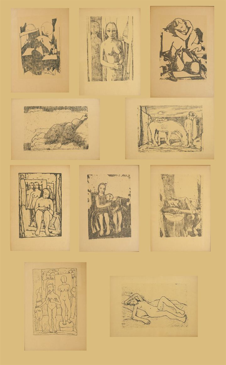 Cartella di dieci litografie in bianco e nero, ognuna 36x25,5 (foglio 50x35,5), es. 73/100