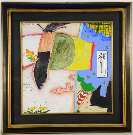 Martin Bradley (Richmond 1931) "The first Butterfly of the Year" 1991, acrilico su tela (cm 50x50) firmato e datato in alto a sinistra. Al retro etichetta della Galleria San Carlo, Milano. In cornice (lievi difetti)