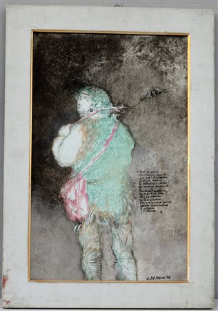 Armando De Stefano (Napoli 1926) "Senza titolo" 1979, tecnica mista su tela montata su cartone (cm 42x27) firmato e datato in basso a destra. (Lievi difetti)