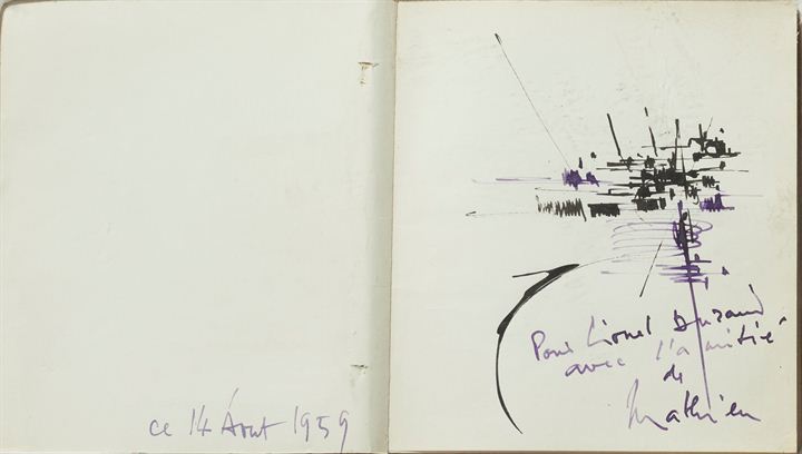 MATHIEU GEORGE F 1921 "Senza titolo" 1959 23x40 tecnica mista su catalogo di...