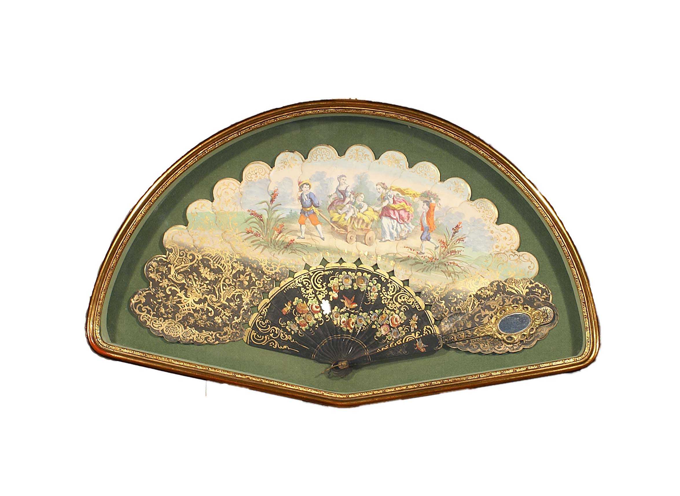 Antico ventaglio dipinto a raffigurare Allegoria dell'Estate entro cornice in...