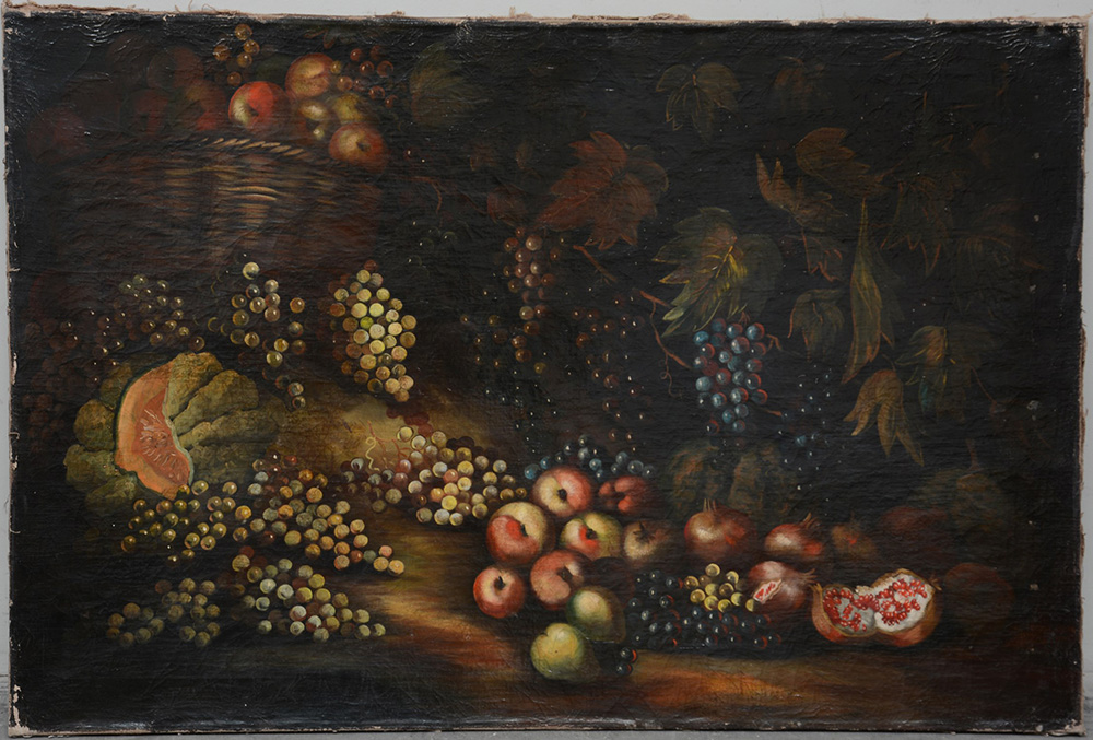 Ignoto, "Natura morta con frutta" olio su tela (cm 80x120) (difetti)