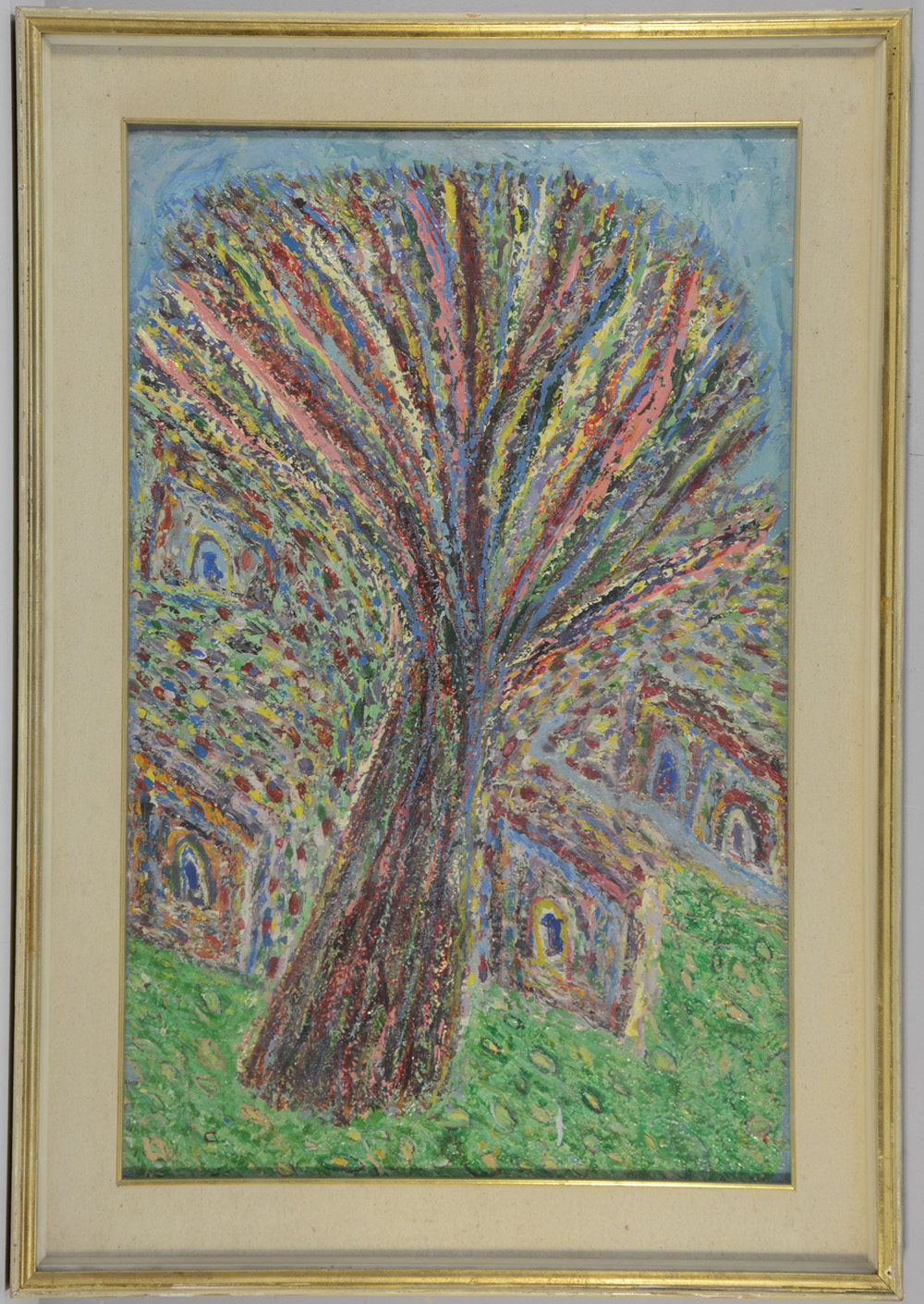 Ignoto, "Albero" tecnica mista su masonite (cm 80x50) iscritto al retro (in cornice)