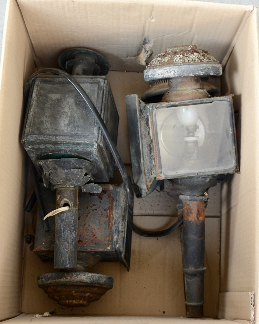 Cartone contenente quattro fari per carrozza (gravi difetti)