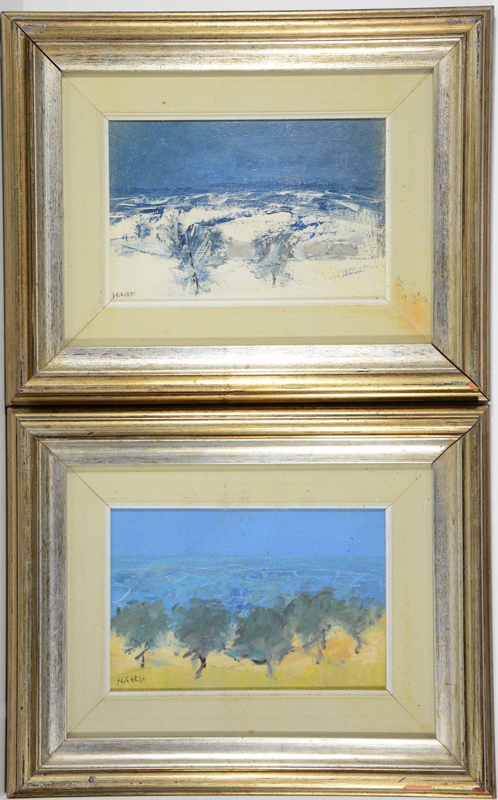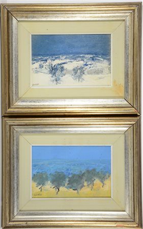 Saccardi "Paesaggi".Coppia di olii su masonite (cm 20x30). Firmato in basso a...