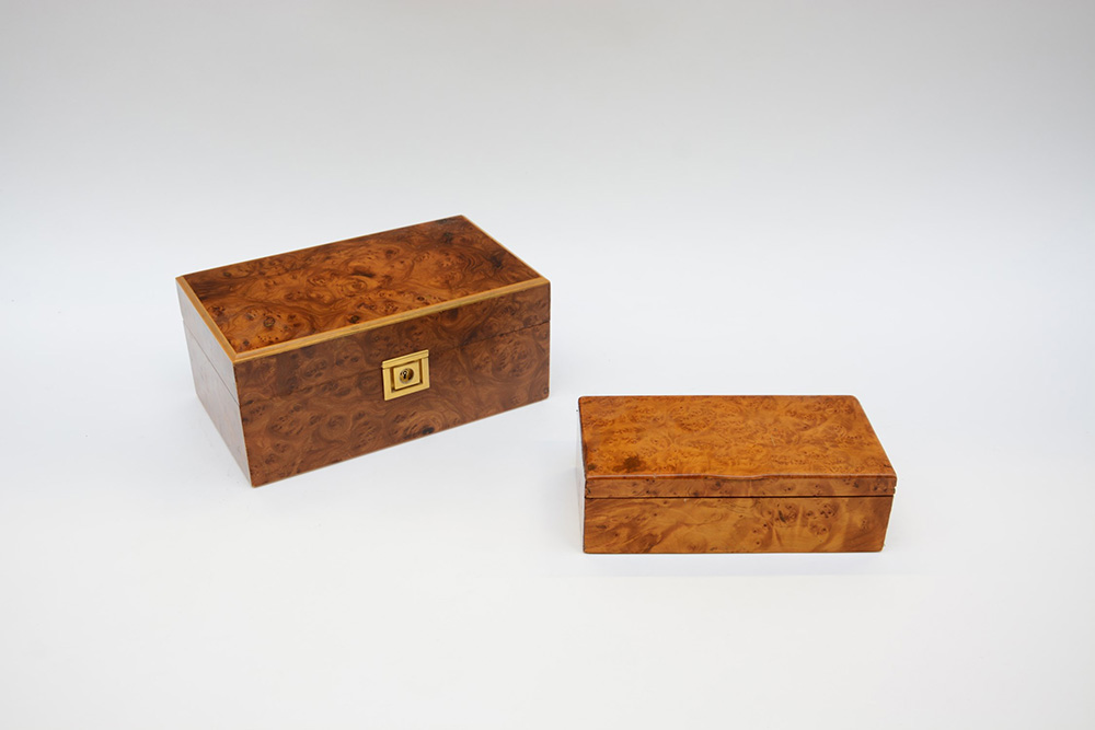 Lotto composto da una scatola portasigari e una in radica (difetti)