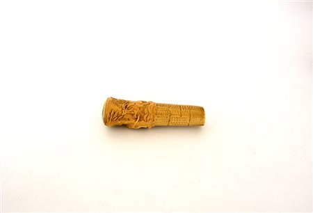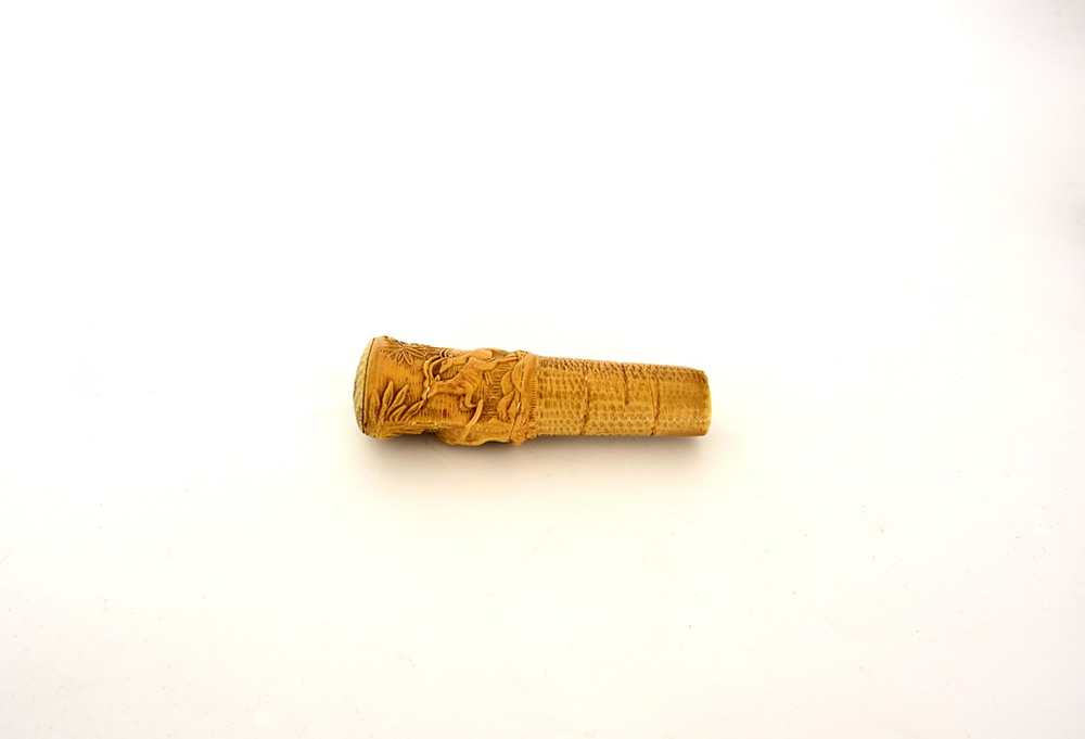Arte del sec. XIX. Manico in osso decorato in rilievo a leoni e antilopi (cm 12,5) (difetti)