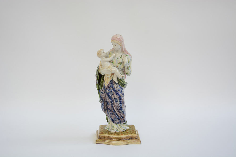 Angelo Minghetti "Mater admirabili", scultura in maiolica decorata in...