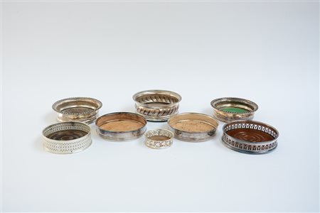 Lotto composto da otto tra sottobottiglia e sottobicchieri in argento e...