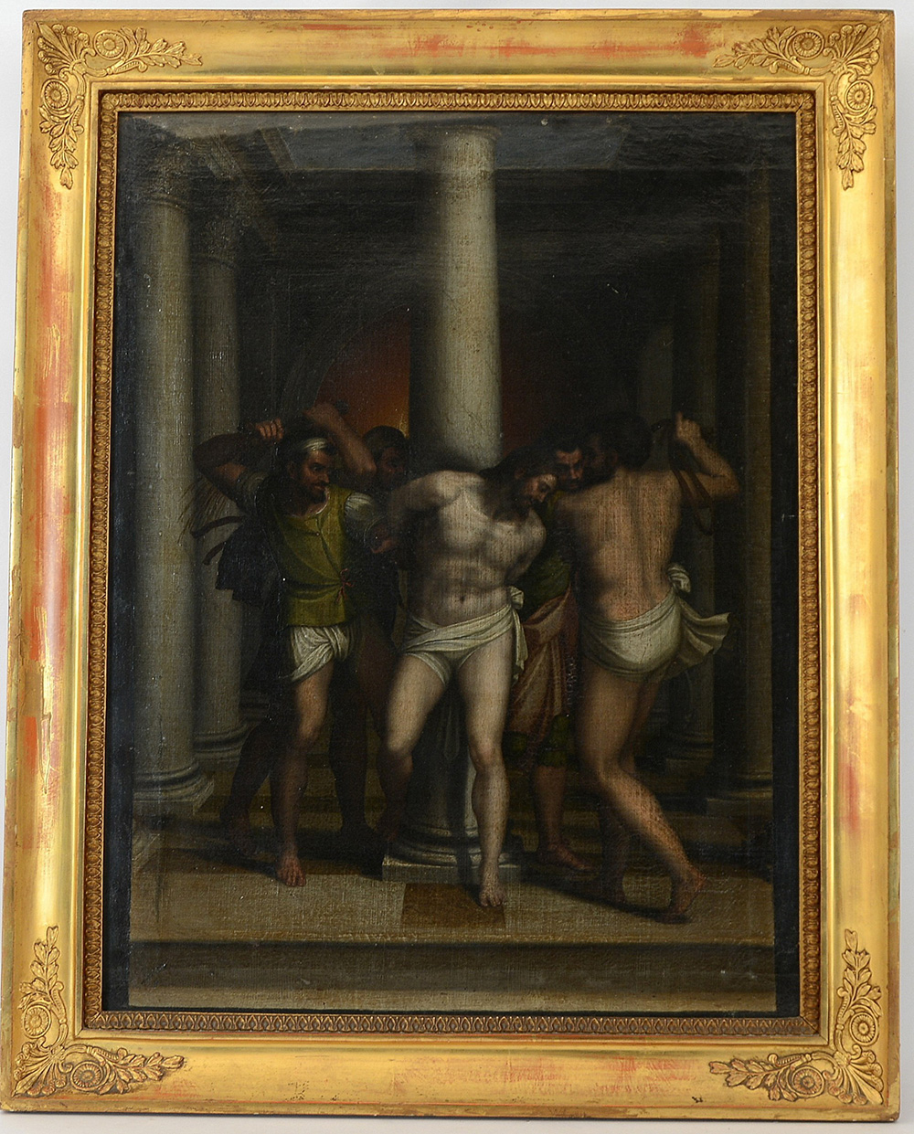 Scuola della fine del sec. XVIII da Sebastiano del Piombo "Cristo alla colonna" (cm 60x50) In cornice del sec. XIX (difetti e restauri)