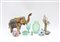 Lotto vario composto da due vasi in vetro verde, un contenitore e un teiera con piattino in ceramica, un porta accendino a forma di stivale e un cofanetto con coperchio in metallo argentato, uniti a due sculture raffiguranti animali (difetti)