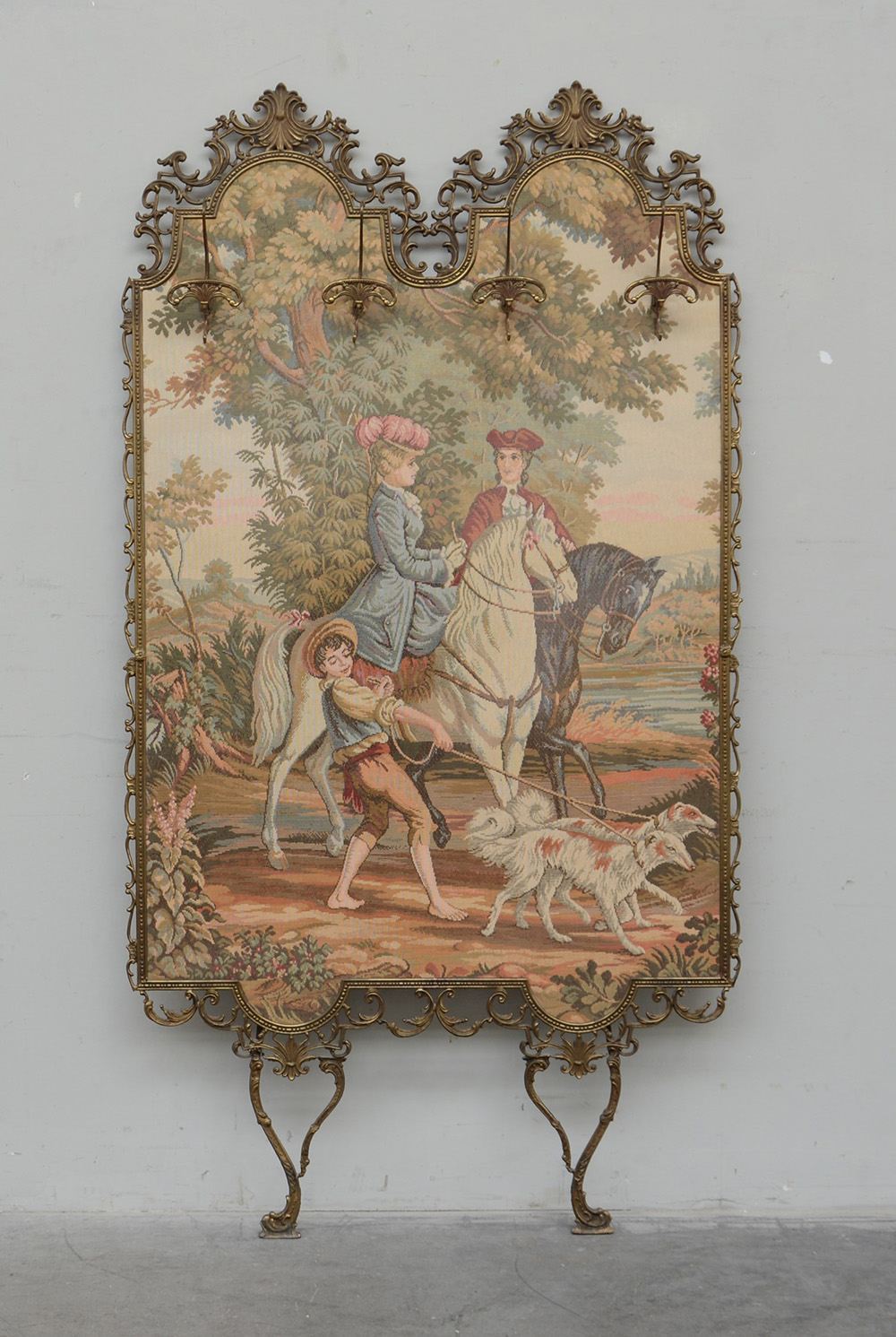 Appendiabiti da ingresso in ottone decorato con pannello a piccolo punto (difetti)